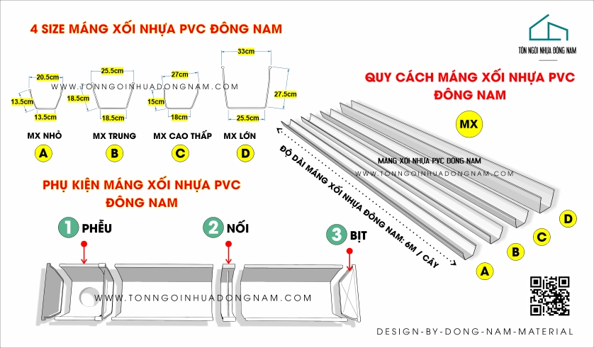 Máng xối nhựa PVC chất liệu bền bỉ, đa dạng mẫu mã