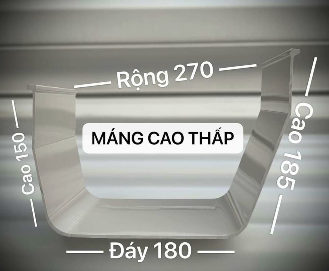 Máng xối size cao thấp là giải pháp tối ưu cho những khu vực có khối lượng nước thoát tương đối lớn. Kích thước: Rộng 270mm, Cao 150mm, Đáy 180mm. Đặc biệt, máng xối cao thấp có thể kết hợp với các phụ kiện phù hợp giúp đáp ứng nhu cầu thoát nước hiệu quả.
